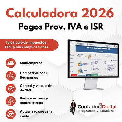 Calculadora 2026 Pagos Prov ISR e IVA para 6 Regímenes. Personas físicas y morales