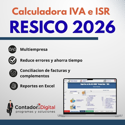 RESICO 2026 – Calculadora ISR e IVA Pagos Provisionales. Personas Físicas y Morales.